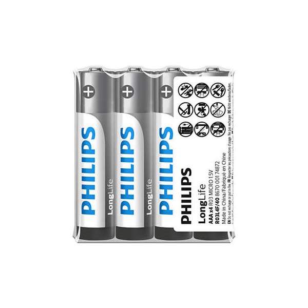 PHILIPS LONGLIFE BATTERY AAA 4 PACK - R03L4F/40