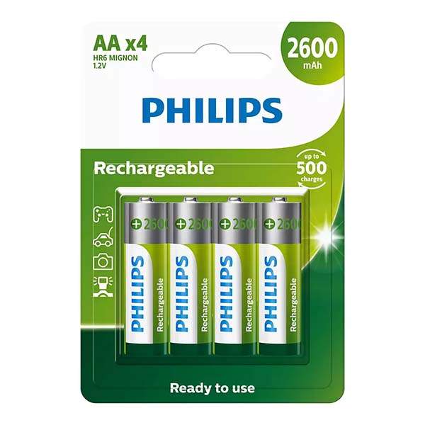 PHILIPS RECHARGEABLE BATTERY AA 4 PACK 2600MAH - R6B4B260/73